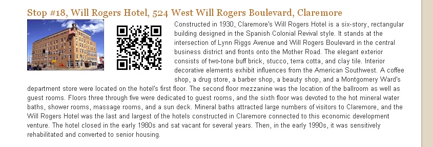 The mobile tour can also be accessed by calling 405-415-0626, then keying in prompts to listen to stories about selected Route 66 historic sites.